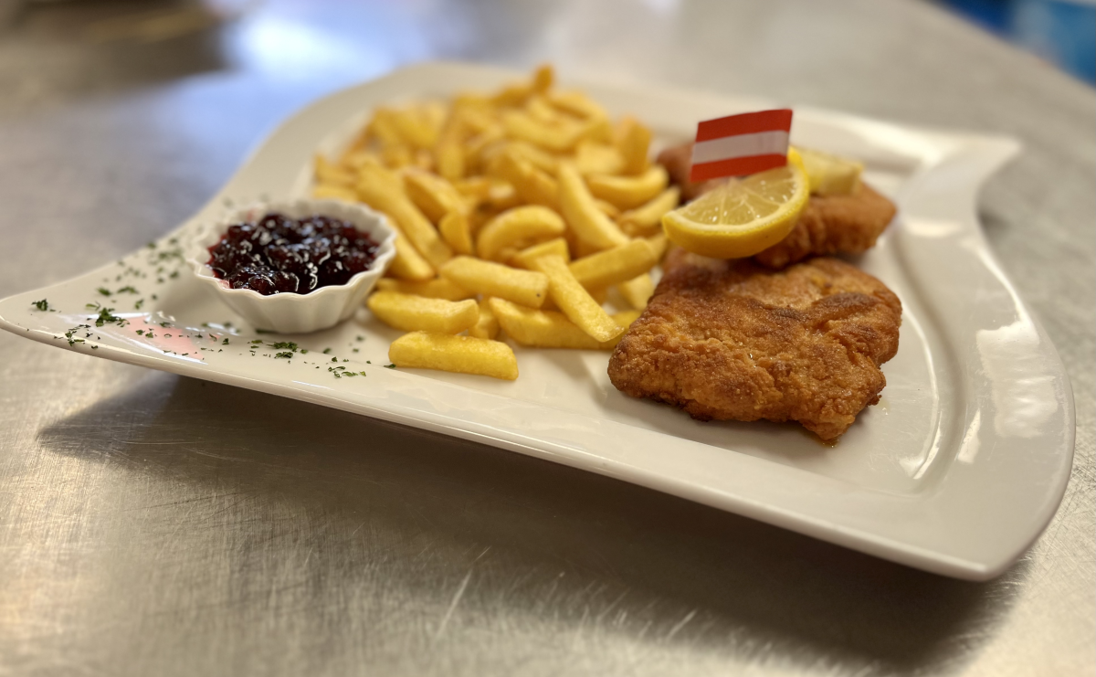 Probiert unsere Schnitzel vom Schwein, der Pute, vom Kaninchen, Huhn oder Hirsch mit Beilagen & Soße nach Wahl. Knusprig und zart, ein Genuss für jeden Geschmack. 🍗😋